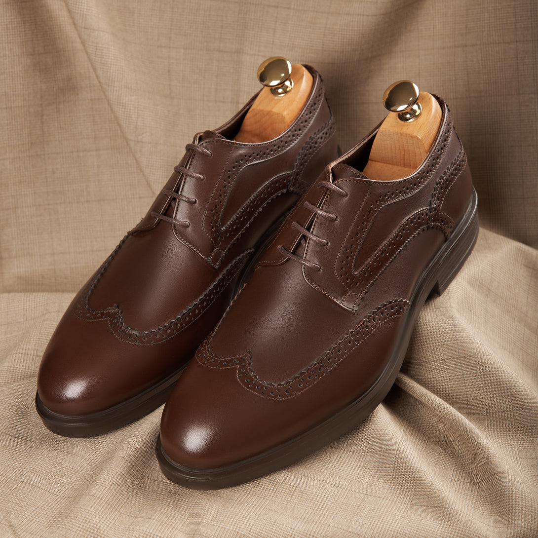 Step into timeless style with the Callisto Derby Brogue – a refined wingtip design crafted for today’s sharp dresser. Its brogued pattern and open-lacing structure bring together versatility and elegance, making it a standout for both work and special occasions.